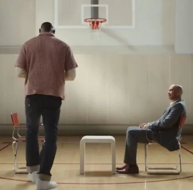 詹姆斯在这个宣布前宣布预告片中,他所穿的衬衫与当时宣布去热火时穿的衬衫一样。
